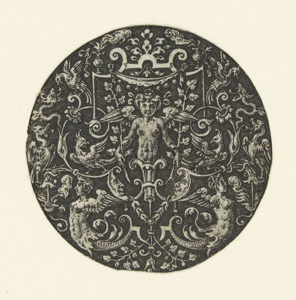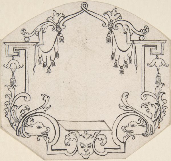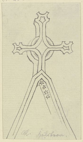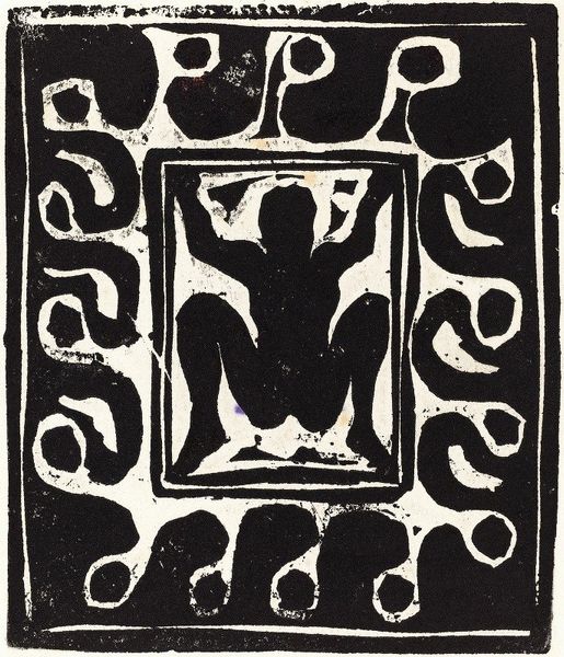 Curator: Nicholas Roerich created this ink drawing in 1918. It's titled "Vignette for book 'N. K. Roerich.'" What catches your eye first about it? Editor: Immediately, the stark simplicity hits me—that solid black against the bright white. It feels both ancient and strangely modern. Like a digital glyph from some future past. Curator: Roerich’s oeuvre certainly plays with those themes. He explored Asian art and symbolism extensively, particularly through the lens of Theosophy. This particular drawing makes great use of geometric abstraction to offer meaning. We can discuss Roerich’s well documented interest in the esoteric. Editor: Right. Esoteric, yes. It feels almost talismanic. And even though it's so minimal, I find myself wanting to reach out and trace the lines with my finger, like a maze or some forgotten ritual. What's this particular symbol though? I get a powerful sense of... protection, somehow. Curator: Precisely! It depicts a "vajra," a ritual object that's very important in Tibetan Buddhism and other Indic religions. The “vajra” is a symbolic representation of the properties of a diamond, namely indestructibility, and those of a thunderbolt, symbolizing irresistible force. In terms of the era, consider also the historical context. It's 1918 and Roerich is capturing both this quest for inner strength, and the force needed to withstand the collapse happening around him with World War I and the Russian Revolution, framing it within broader spiritual and historical patterns. Editor: Knowing all that gives it so much more weight! This isn't just some abstract doodle, but a powerhouse of intention crammed into the smallest space. Even now, it transmits something… it's hard to put into words. It gives the impression of solidity but it also feels volatile. Curator: It absolutely transcends its humble origins. I mean, it’s “just” a book vignette, but when you examine its visual language within the historical context, you get something really special. Theosophy and Eastern spirituality were important influences during the war and early modern periods. They still resonate. Editor: It's amazing how something so small and seemingly simple can hold so much. I guess that's the power of art, isn't it? I mean, for me it has such an appealing combination of form and depth; almost contradictory but truly affecting. Curator: Indeed. A testament to how visual expression when carefully situated in a broader political and intellectual landscape offers lasting historical, aesthetic, and symbolic reverberations.