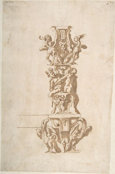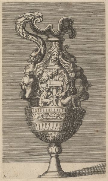 René Boyvin created this engraving of a ewer, an elaborate pitcher, in the mid-16th century, a time when printed images were key in disseminating artistic ideas. Boyvin was a key figure in the School of Fontainebleau, known for its distinctive ornamental style which drew on classical antiquity. This print exemplifies this, taking the form of a vessel, but adorned with mythological scenes including Venus, the Roman goddess of love and beauty. At the time, women were often reduced to symbols of beauty or morality, but here Venus subverts those constraints, depicted with active agency. The ewer's design weaves together images of power, femininity, and classical ideals, reflecting the complex tapestry of Renaissance thought, even the grotesque masks and insects that may seem unsettling to our contemporary eyes, were part of the visual vocabulary that held particular meaning for its original audience. Boyvin invites us to reflect on the layers of meaning embedded in objects and images, and how these interact with our understanding of culture, beauty, and the narratives we inherit.