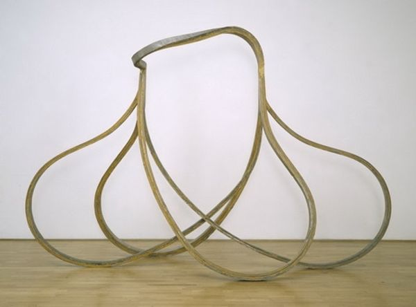 One of William Tucker’s aims during the 1970s was to focus on the essential qualities of sculpture, in contrast to any other art form. Works such as this are difficult to ‘read’ visually, despite their apparent simplicity. As with many minimal objects, it is impossible to grasp its structure at a glance; you must move around the sculpture physically in order to understand its form. In this sense, Tucker succeeded in producing works that are the opposite of images. Gallery label, August 2004
