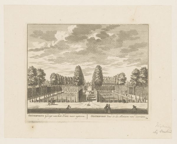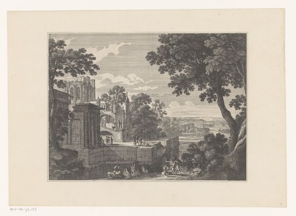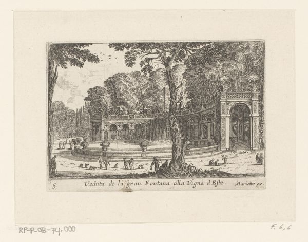 Editor: This etching from 1646, by Israel Silvestre, depicts the Dragon Fountain at the Villa d'Este. The detailed rendering of the fountain is impressive! How do you read this piece within its historical context? Curator: I see it as a powerful commentary on control and spectacle in the Baroque era. This image of the Dragon Fountain reflects not just the wealth and power of the aristocracy, but also how that power was carefully constructed and displayed. How do you think the artist uses visual language to reinforce this hierarchy? Editor: The high vantage point and detailed rendering do seem to suggest control, almost like looking down on a stage. It's like the viewer is positioned as someone of status. Curator: Exactly! And consider the use of mythological creatures like dragons. What function did they play in asserting dynastic legitimacy and intimidating rival political entities? Also, how does this meticulously crafted image circulate ideas about empire and domination across Europe, especially considering that prints were often disseminated widely? Editor: It sounds like this isn't just a picture, but a political statement broadcast to a large audience through reproducible media like etchings. Did Silvestre have a political agenda or a position in society? Curator: Precisely. Silvestre was connected to prominent courtly circles and aristocratic patrons, so he might have enjoyed making art about powerful and wealthy men, and in the context of ongoing tensions, it certainly offers us insights into the workings of 17th-century power. It reveals how representations of grand constructions became tools in broader socio-political conflicts. Editor: That’s given me a lot to think about. I went into this just seeing a pretty fountain, but now I’m seeing something more sinister bubbling under the surface. Curator: I’m so glad. And sometimes looking closely helps expose these undercurrents. I am so thrilled to be here, discussing art history through a critical, social, and historical lens.