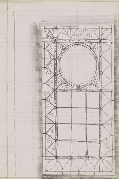 Editor: We’re looking at Gerrit Willem Dijsselhof’s "Ornament met vlakken," created around 1901. It’s a pencil drawing on paper, currently held in the Rijksmuseum collection. My initial impression is that it looks like an architectural blueprint of some sort; it reminds me of decorative window patterns from the Art Nouveau period. What compositional elements stand out to you in this piece? Curator: Focusing on its intrinsic qualities, the linear composition immediately strikes me. The interplay of geometric shapes – diamonds, circles, and partial curves – dictates the structure. We can view the whole composition as a sophisticated manipulation of positive and negative space, an interesting dance of what is and isn't there. Do you notice how the repeated motif creates a rhythmic pattern? Editor: Yes, there's a distinct rhythm, but I find the lack of shading or color a little underwhelming. Is that just a limitation of the medium? Curator: Not entirely. Consider that the lack of tonal variation forces us to focus purely on the line itself. This drawing foregrounds the act of delineation. Every stroke carries visual weight. This lends the design an abstract quality. The structure dominates, while any attempt at realism is wholly abandoned. It reduces visual representation to its essence. Editor: So the 'ornament' lies in how the shapes are arranged, rather than any representational meaning? Curator: Precisely. It prompts the question: what is ornament if not the beauty inherent in pure form and calculated repetition? It is a pre-figuration of Modernist emphasis on pure form and flatness. Editor: That makes me see it in a completely different way! I was so focused on trying to interpret it, I missed how the arrangement itself *is* the message. Curator: Indeed! Looking beyond surface-level representation leads to rewarding insights regarding intrinsic pictorial qualities.