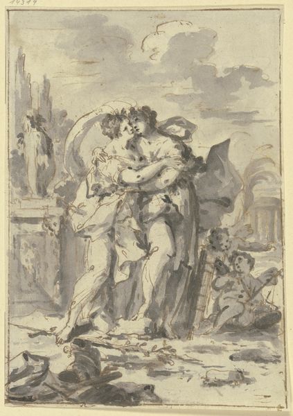 Giovanni Domenico Tiepolo made this pen and wash drawing of Hercules and Antaeus. The image depicts a scene from classical mythology, where Hercules defeats Antaeus by lifting him off the ground, thus depriving him of his strength. Made in Venice, this drawing speaks to the enduring appeal of classical themes in 18th-century European art. But it goes further than that, reflecting the period’s fascination with the male nude and the heroic. Tiepolo presents us with a dynamic composition full of tension and drama. The exaggerated musculature, the contorted poses, and the contrast between light and shadow heighten the emotional intensity of the scene. Understanding this work requires looking into the visual culture of 18th-century Venice. It also necessitates considering the role of the Academy in shaping artistic taste and the impact of patronage on artistic production. By consulting historical sources such as period treatises, biographies, and exhibition catalogs, we can gain a deeper appreciation. In doing so we reflect on the social and institutional contexts that shaped its creation and reception.