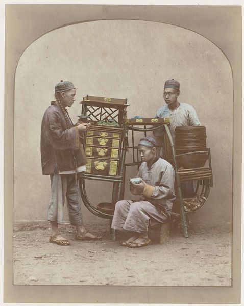 This is a hand-colored photograph by Carlo Ponti, taken in Venice, portraying a young woman with a yoke, carrying buckets alongside a young boy. The yoke itself, a tool of burden, transcends mere utility. Consider its echoes through time. This image calls to mind ancient depictions of laborers, their yokes symbolizing not just work, but also social structure. Think of classical allegories of labor, or even religious art where burdens are metaphor for spiritual trials. The weight on the woman’s shoulders is reflected in the boy's gaze. The reappearance of the yoke motif can be found in various artistic forms and cultures across history. It speaks to a collective memory of toil, endurance, and perhaps, unspoken resistance. It resonates deeply, touching on primal, subconscious understandings of the human condition and the cycles of life and labor. It is a symbol that continuously resurfaces, each time imbued with new layers of meaning.
