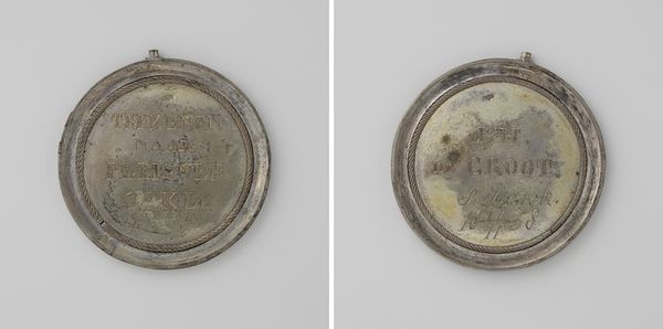 Curator: Here we have a 19th-century metal medal, created in 1850 by an anonymous artist. It was awarded as the second prize at shooting competitions, organized to commemorate the opening of the shooting season, and it bears the inscription 'Eendracht en Vriendschap,' meaning 'Unity and Friendship'. Editor: The medal appears almost worn, smoothed with age, giving it the air of an everyday relic of past civic festivities. What exactly did the shooting season entail in the Dutch context of the time? Curator: Well, these events were important social occasions for civic militias, emphasizing community bonds, and they have deeper roots that stem from the Middle Ages. Victory wasn't just about skill. It carried symbolic weight related to the collective defense, shared prosperity, and the honour of the community itself. Editor: That makes sense considering this looks more craft object than decorative jewel. One could trace the evolution of military arms, technologies, and social values by analyzing all this kind of material cultural expression across different social strata of its time. Who crafted this exactly? Curator: Unfortunately, the identity of the craftsperson has been lost to time. The cultural memory inscribed here takes precedence over any single authorship, don't you think? This anonymity directs us towards the collective identity these medals reinforce. The pursuit of marksmanship stands here as both a virtue and civic duty. Editor: And these inscribed virtues tell us more about production? Like, who actually consumed this craft production, or did this medal have a different status value across a specific social sphere? It might have functioned as some symbolic capital as much as it stands a mere recognition or mere social bonding ritual. Curator: That's a keen observation. Certainly, the medal acted as more than a simple reward, becoming an emblem of honor within the shooting society and perhaps an expression of status within their circle. It's interesting to consider how deeply ingrained these traditions were within society, linking personal prowess to collective well-being. Editor: The more that social artifacts like this get analyzed, the richer our understanding grows. Curator: Indeed. It bridges history with social symbolism in quite a thought-provoking way.