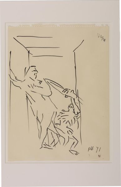 Curator: This is Willem de Kooning's Untitled drawing, currently held at the Tate. Look at the bold charcoal strokes on paper. What’s your initial impression? Editor: It feels raw, almost primal. There's an unresolved tension in the lines, a sense of searching for form without quite finding it. Curator: De Kooning's work often explores fragmented figures and landscapes. The charcoal medium lends itself to the immediacy he sought, echoing the gestural abstraction prevalent during the mid-20th century. Editor: Absolutely. The lack of distinct forms invites projection. The ambiguous subject matter reflects the anxiety of the post-war period as well as the artist’s exploration of feminine archetypes. Curator: I agree, though I think it's less about projecting meaning onto a void and more about recognizing the underlying symbols present across cultures. Editor: Well, whatever its deeper symbols, it's an intense work. Curator: I concur. It’s a potent reminder of the power of suggestion.