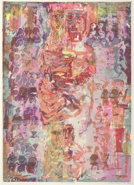 Editor: This mixed media work on paper is called “Untitled,” created by Simon Hantai in 1971. It has a very intriguing texture, almost like crumpled fabric with colorful light shining through it. What do you see in this piece? Curator: I see a fracturing of the familiar, a symbolic breaking down of form that speaks to a search for new meaning. The folds themselves become glyphs, potent symbols. The colors bleeding through could be seen as repressed emotions seeking release, struggling against the imposed structure. Do you sense any feeling of confinement? Editor: I do see that. It almost feels trapped. But where does the "new meaning" come in? Curator: The act of folding itself is laden with meaning. Think about ancient divination practices – folding paper, casting lots. Hantaï perhaps saw the act as a way to generate unforeseen outcomes, a new visual language born from controlled chance. The overlapping shapes suggest a complex network – a visual metaphor for memory, constantly layering and re-configuring itself. What resonates most with you? Editor: The idea of controlled chance is interesting. I also find the link to memory really compelling. I hadn't considered the folding as symbolic, more as a formal choice. Curator: Precisely! Form and content are inseparable. Reflect on how cultural memory might inform even abstract gestures. Editor: That's given me a completely different perspective on abstraction! Curator: Art expands as you discover and contemplate visual language.