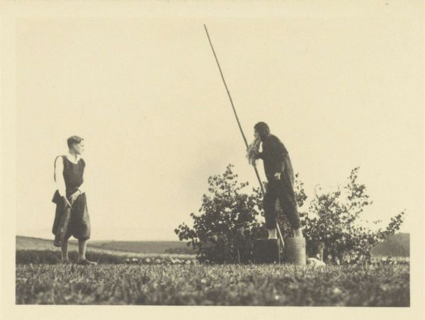 This photograph of Georgia O’Keeffe, Elizabeth Davidson, and Fred Varnum was taken by Alfred Stieglitz sometime during his life before 1946. Stieglitz used the camera to capture a moment, but it's a constructed moment. The tones are soft, almost velvety, focusing on the human figures rather than the landscape. You can feel the grass, the weight of the water in the bowl. The image is of three people outdoors. O’Keefe is caught in the act of pouring something from a bowl, Elizabeth is kneeling with a rack of paintings and Fred stands behind them, watching. It’s a tender scene. It reminds me of the work of someone like David Hockney, who used photography as a basis for painting and who also had this talent for capturing the nuances of everyday life with a sense of theatrical composition. Art is never just a mirror, it’s a lens, it helps us see things anew, to find meaning and poetry in the mundane.