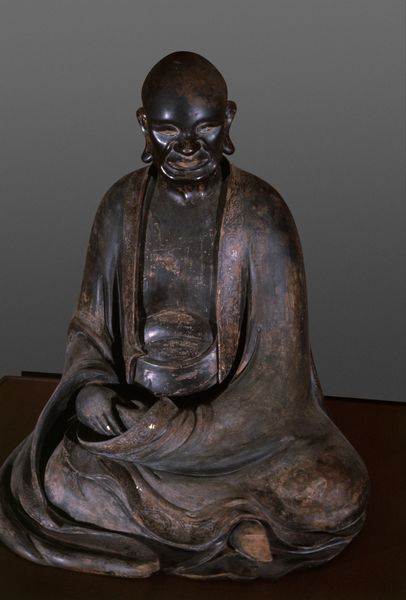 Holding his left hand palm up in his lap and extending his right hand to touch the ground before him, this Burmese image of the historical buddha, Shakyamuni, makes a gesture known as bhumisparsha-mudra, or “calling the earth to witness.” It is a depiction of the moment immediately after his enlightenment. While meditating, the Buddha was bombarded by an army of demons sent by Mara, but he was able to overcome these distractions and achieve enlightenment. Mara tried to claim the Buddha’s enlightenment as his own, with the demon hoards as his witnesses, but the Buddha, reaching out his right hand to touch the ground before him, called upon the earth itself to bear witness to this achievement. Depictions of this moment in the Buddha’s life are particularly common in Southeast Asia, including Myanmar and Thailand, whereas they are rarely seen in East Asian cultures like China and Japan.