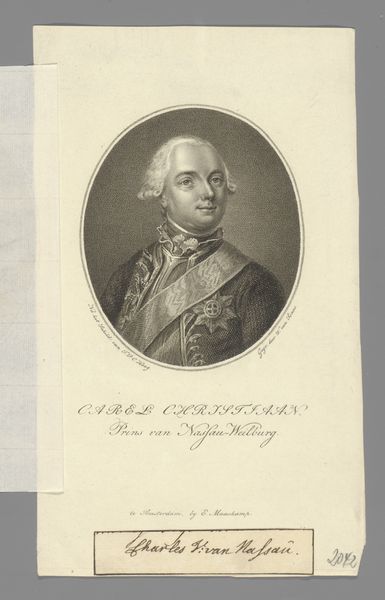 Curator: Let’s take a look at "Portret van Friedrich Heinrich Ludwig van Pruisen." It's currently held here at the Rijksmuseum. This portrait, dating sometime between 1787 and 1825, offers a glimpse into Prussian royalty, created in the Neoclassical style. The medium is engraving. Editor: Well, first impression, there’s something almost melancholic about it, isn’t there? The formality mixed with that soft, almost gentle shading. It feels like looking back through layers of powdered wigs and dynastic obligation. Curator: Precisely! The engraving process itself is fascinating. Think about the labor involved, the meticulous crafting of the image on a metal plate. It would've been printed to circulate his image and, by extension, the authority of the Prussian line. And we can't forget that engravings such as this also served a critical role in documentary reproduction. Editor: It’s clever how it softens a statement. He's clearly a man of stature, but the way the light catches those curls just makes him human, accessible almost. Does that make sense? Curator: It does, because it was often the point! These portraits straddled a line. They presented an image of power but also of someone relatable enough for public consumption and allegiance. Notice also how the material—the paper, the ink—becomes a vehicle for disseminating these social ideals, practically mass producing loyalty, in its time. Editor: The clothing almost acts as a sort of costume—I am made conscious here that clothes make the man; that even a simple expression or feeling is wrapped up tight in the trappings and obligations of legacy and power. And it sort of takes him away from me, do you know what I mean? Like he's behind glass, a beautiful butterfly mounted, so to speak. Curator: A pertinent observation indeed. Even a casual reading acknowledges its contextual role in asserting princely bearing through mass reproducibility and consumption. Editor: Considering all that, I look at it differently now—less like a window into a soul, and more like… an intricate piece of propaganda. But still undeniably elegant in its craftsmanship, there's magic, too. Curator: Exactly! It brings into stark relief our current conversations on visual representation and power structures, through production methods that, while dated, still reflect underlying sociopolitical tensions and ideals. Editor: Beautiful, dark, powerful!
