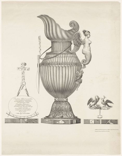 Editor: This drawing presents "Studies for four urns with a walking stick and hat" created sometime between 1700 and 1800 by an anonymous artist. The work, done in ink, offers these beautiful line drawings with much attention to form and style. I'm really drawn to the different personalities each urn has. What strikes you most when you look at this study? Curator: Ah, yes. Each urn does indeed have a distinct personality. For me, it’s the dance between the functional and the purely decorative. Don't you find yourself wondering what purpose these urns were meant to serve? Or perhaps they existed solely to please the eye. Consider the period; academic art often focused on idealised forms, a search for perfection, really. What do you think these drawings tell us about the artistic process of the time? Editor: That’s interesting, thinking about their potential function. I guess I hadn't considered that maybe they weren’t really meant to *hold* anything. But I never really thought much about art serving more than aesthetic purposes in the past! So do you think these were meant to showcase some anonymous designer's technical skill or artistry? Curator: Perhaps it was both? The clean lines suggest technical proficiency, certainly, but look closer. Notice how each urn possesses a unique flourish? It's more than just technical skill; there's an inherent creative spirit at play. Even something seemingly mundane can become a canvas for creative expression. You see that, don’t you? Editor: Absolutely. Now that you point it out, it feels more like the artist had fun sketching these out, which makes me connect with the art on a much more intimate and modern level. I wouldn't have been able to discern all of that on my own. Curator: And isn’t that what art is all about, ultimately? A connection? It bridges the centuries, reminding us that even across time, we share a common desire to create, to admire, to find beauty. A beautiful idea if you ask me.
