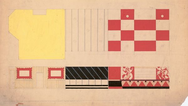 Curator: This is "Stained glass composition," a work from 1923 by Theo van Doesburg. Editor: Immediately, what strikes me is the raw materiality. You see the grid beneath, the tentative lines—it exposes the entire making process, as if laid bare for examination. Curator: Absolutely. And that's very characteristic of De Stijl. The use of primary colors, the geometric forms—it’s all about stripping down art to its essential elements to create a universal visual language. What does that language say to you? Editor: I'd say the transparency allows a discourse about labor and the relationship between the hand and industrial processes. This grid is like a template that can be used, copied, and even commercialized. How can that template be disrupted? Who benefits from its commodification? Curator: I can't help but think of it through the lens of social and political change of that era. Doesburg's pursuit of pure abstraction was also driven by a desire to create a more harmonious and balanced society. By rejecting subjective expression, he wanted to achieve something objective, universal... utopian, even. Editor: Utopian perhaps, but within reach because of those visible components that show labor. We can touch it; we can emulate it; we can adapt and produce other arrangements from that making. We are so aware of how he constructed this image. Curator: Precisely. By making these structures, he believed it had transformative potential—challenging conventional ways of seeing and experiencing the world around us. But thinking about labor and materiality... how might our understanding of gender roles influence our reading? Was there a particular exploitation in production? Editor: Yes, because then we can discuss who that transformative potential truly serves, or even whose hands held these tools. Were they recognized? Acknowledged? Valued for their contribution? That changes the way we look at this piece. Curator: Definitely. It allows us to critically engage with the idealistic ambitions of the movement, while also revealing those parts in making it. Editor: Thinking about production changes how one interprets "Stained glass composition." Instead of something so sterile, it creates opportunity.