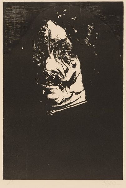 Otto Rudolf Schatz created this stark portrait of Heinrich Schwarz using woodcut techniques. Schatz, who lived through both World Wars, was known for art that often reflected his social and political views. Here, the high contrast between the black ink and the bare paper emphasizes Schwarz’s features, particularly his eyes, giving him an intense, almost haunting gaze. The sharp lines create a sense of depth and texture, hinting at the complexities of Schwarz's character. This portrait raises questions about identity and representation: how do we perceive individuals, and what aspects do artists choose to highlight? The woodcut medium itself, with its history of use in propaganda and social commentary, adds another layer to this piece. The artist is not just presenting an image, but also making a statement about Schwarz. The work invites us to reflect on the weight of history and the stories embedded in the faces we see.