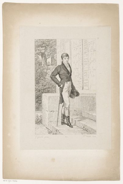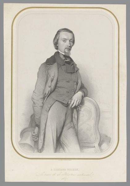 Editor: This is Auguste Raffet's "Portrait of Paul Kolounoff", an engraving from 1848. I find the figure has an incredible sense of stillness; everything in the composition feels balanced and poised. How do you read this portrait? Curator: What strikes me first is the sitter's composed elegance, despite what must have been a turbulent time in Europe! This piece reminds me that portraiture, especially engraving, had the fascinating power to both idealize and document. He's definitely striking a pose, but the artist also manages to capture what feels like a candid quality. Don't you think there's almost a modern sensibility in his eyes? A self-awareness perhaps? Editor: That’s such an interesting take! It's as though he knows he's being observed and is presenting a specific version of himself. It is subtle. It is just…there! How does the fact that this is a print, an engraving specifically, influence your perception? Curator: Well, an engraving inherently involves a translation—the artist meticulously carving lines into a plate that's then inked. This process creates a layered, almost textural quality. You lose the immediacy of, say, a charcoal sketch, but gain an incredible precision and potential for mass production. I think Raffet masterfully uses the medium to emphasize line and form, capturing Kolounoff's presence with remarkable detail. What do you make of that, looking closely? Editor: I didn't even think of that level of exactitude that the medium demands. I just thought of ‘print’ as in… replicated…but your explanation shows that each image can hold such detail, revealing the sitter and also something about the artist who engraved the plate. I’ll definitely be stopping by prints and engravings more often. Thank you! Curator: Indeed. It’s always more rewarding once we truly look!