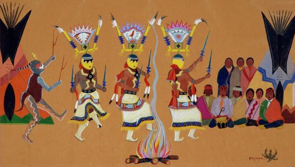 Here's "Dance," by James M. Louis, made using paint on a sheet of paper. The figures are captured through many rapid marks of layered colors. It reminds me that making art is a process; not just a search for the right image, but an ongoing activity that can lead to unexpected outcomes. If you look closely, you'll notice how the texture varies across the surface. See the thick, almost sculptural quality of the paint in their clothing, versus the much thinner application in their headwear. The color palette seems limited, yet there’s so much variation within it. Look at the dancer at the far right, with its speckled costume, it is an explosion of detail. There's a connection here to artists like Forrest Bess, who created visionary paintings with similar directness and intensity, exploring personal mythologies. Ultimately, art is about opening up possibilities, not closing them down.