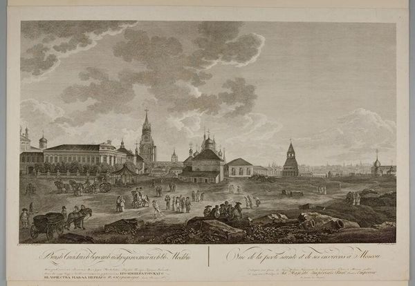 Editor: This print, "View of the Mountains of Ice during Carnival at Moscow," is by G. Oberkogler. The detail is incredible! What strikes me is the depiction of labor involved in building these ice structures. What do you see in this piece? Curator: It's fascinating to consider how the materials—ice and wood, presumably—were sourced, transported, and assembled. Who were the laborers? Was this forced labor, or paid? The print inadvertently documents the social context of its creation. Editor: So, beyond the festive scene, it's revealing the labor and class structures of the time? Curator: Precisely. The “mountains of ice” were a spectacle, but at what cost, and who benefitted? It makes you question the relationship between art, labor, and consumption. Editor: That gives me a lot to consider, thank you! Curator: A crucial perspective to remember when we look at art.