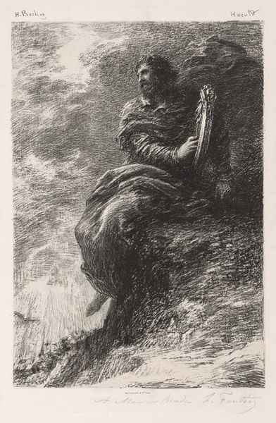 Curator: This drawing, entitled "Poland '46," was completed in 1946 and likely made with graphite or charcoal. Its stark imagery certainly evokes a strong reaction, doesn’t it? Editor: Absolutely. The rawness is what hits me first—the distressed, smudged textures and how immediate the emotion feels. You can feel the weight of what’s happening. Curator: Considering it was made just after the Second World War, the image must be understood within that specific context. What narratives might this tell us about Poland in that period? Editor: To me, the social and personal narrative is clear: loss, displacement, and survival. The figure's covered face suggests a desire for anonymity but also alludes to collective trauma and perhaps even a sense of shame. And what are these skeletal structures looming over these children? They're practically fused to the mother. This feels almost allegorical. Curator: Right, it certainly reflects a societal reckoning with devastation on a massive scale. Remember, much Polish cultural heritage and infrastructure were destroyed during the war. The artist likely saw it as their civic duty to respond. We also shouldn't forget the constraints they may have faced exhibiting artworks with overtly critical messaging so soon after the war. Editor: That makes me think of the loaded symbolism around motherhood, then and now. Was she allowed autonomy or pressured to survive under duress? To bear the standard for recovery in a landscape marred by suffering? Curator: I’m particularly drawn to how the composition forces the viewer to meet the woman's gaze. It’s challenging, confrontational. Editor: That's a crucial point. Even amidst such visible wreckage, it denies us voyeurism. We are directly implicated in their gaze. The charcoal smudges amplify the message: her trauma is shared. Curator: Looking at "Poland '46" through a contemporary lens, we're forced to acknowledge that such post-conflict anxieties are unfortunately perpetually relevant around the globe. Editor: Absolutely. It's a somber yet powerful reminder of both resilience and the intergenerational trauma that persists beyond the immediate devastation of conflict. The role of witness then and the role of remembrance now feel connected.