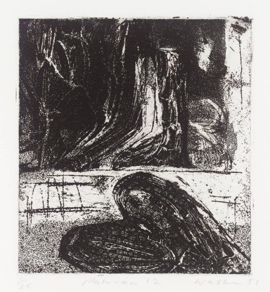 Editor: Here we have Zoran Music's intaglio print, "We Are Not the Last." The stark contrasts and anguished figure create such a powerful sense of despair. What does this work say to you? Curator: Music’s experiences in Dachau profoundly shaped his vision. This image transcends personal trauma, becoming a stark reminder of collective suffering and the institutional dehumanization inherent in war and genocide. It challenges viewers to confront uncomfortable truths about humanity's capacity for cruelty. Editor: So, it's not just about personal suffering, but also a broader commentary on historical events? Curator: Precisely. The title itself, "We Are Not the Last," suggests a cyclical nature of violence, prompting reflection on our responsibility to prevent future atrocities. How do museums impact the reception of such a powerful and potentially triggering image? Editor: I see how the institutional framing influences our understanding of this piece. Thank you. Curator: My pleasure. It is essential to consider the artwork's historical context to have a deeper understanding.