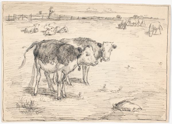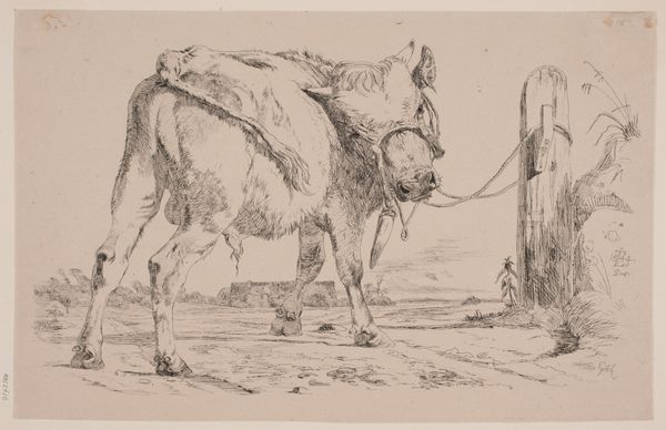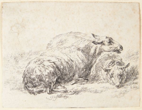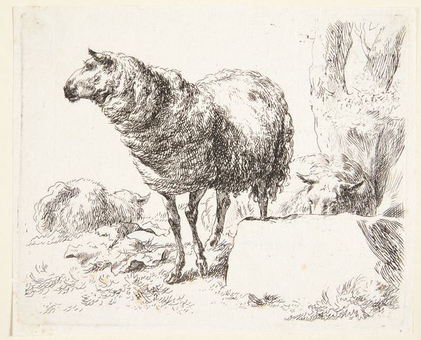 Nicolaes Berchem created this drawing, "Et stående får," which translates to "A Standing Sheep," sometime between 1620 and 1683. Berchem was a prominent figure in the Dutch Golden Age, a period marked by the rise of mercantile capitalism, colonialism, and the expansion of global trade networks. Berchem, like many of his contemporaries, often depicted pastoral scenes that romanticized rural life, reflecting the values and tastes of an increasingly urbanized and wealthy Dutch society. While seemingly simple, images like "A Standing Sheep" subtly highlight the economic structures of the time. Sheep were commodities, central to the wool trade that fueled the Dutch economy. Consider the sheep's gaze—perhaps it's a subtle nod to the voiceless laborers, both human and animal, whose exploitation underpinned the Dutch Golden Age. In its quiet stillness, the drawing prompts us to reflect on the complex relationship between humans, animals, and the economic systems that shape their existence.
