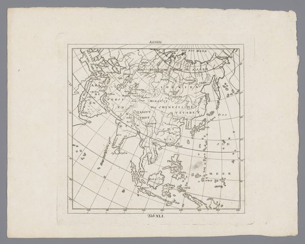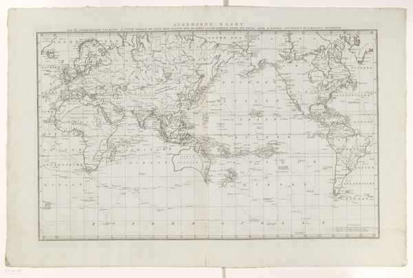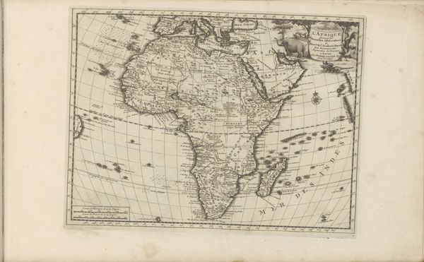 Curator: Here we have a rather fascinating print entitled "Kaart van Afrika," created in 1774. It's an engraving on paper, employing ink to delineate the continent's features. What are your initial thoughts? Editor: Stark, clinical even. The grid is so prominent, imposing a sense of… ownership? It’s interesting that the unknown cartographer, emphasizes the geometric structure as much as the land itself. It looks more like an act of subjugation than simply a map. Curator: Exactly! Consider the historical context: 1774. Europe was in a frenzy of colonial expansion. Maps like these were not neutral; they were tools of empire. They visually asserted control, carved up territories, and influenced political narratives back in Europe. Editor: Absolutely. Look at how different regions are labeled, or even omitted. “Negritien,” right there in big letters. This isn't just geographic data; it’s about racial categorisation and a deliberate creation of hierarchies. These labels dehumanise and justify exploitation. Where are the names of the actual people living there? Curator: This particular print likely served a didactic purpose, disseminating geographic "knowledge" – a controlled, Eurocentric view – to the European public. Note the precise coastline contrasted with the vague interior. It's reflective of where Europeans actually were along the coast, versus what they "imagined" the interior to be, all rooted in limited exploration. Editor: And it's powerful to recognise this lack of "knowledge" as deliberate ignorance. It allows the colonizers to project their own desires and narratives onto the land and people, obscuring the existing complex realities. A seemingly objective drawing actively conceals more than it reveals. Curator: Right. We should also note how the act of producing and circulating this map in Europe creates and solidifies these power dynamics. Its availability and inclusion in publications reflect what information and perspectives are privileged during this period. Editor: Precisely, what isn’t being shown is just as critical as what is. Engaging with this map today offers the ability to reclaim those silences, fill them with the stories, and actively critique these kinds of power structures that persist to the present day. Curator: Thank you for adding those dimensions, considering how maps reflect the social structures of their time challenges us to look at our contemporary geographic information with a similar critical eye. Editor: And for that, it underscores the importance of visual activism, urging us to reclaim images and confront ongoing power structures in innovative ways.