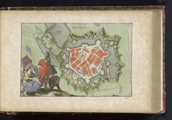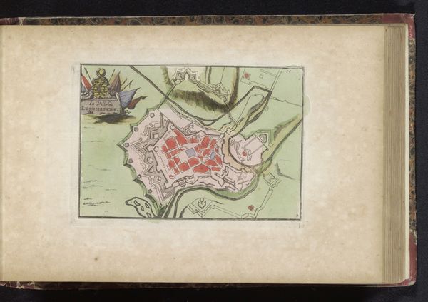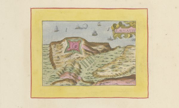 Editor: We're looking at "Bombardement van Le Havre, 1694," likely made between 1700 and 1735 by an anonymous artist. It seems to be a print or engraving on paper, possibly with watercolor and ink, depicting a bird's-eye view of a city under naval attack. I'm struck by how meticulously detailed it is, despite its small scale. The sheer number of ships is quite imposing. What captures your attention most in this piece? Curator: Oh, I'm completely drawn into its cartographic poetry. Maps are never just about geography; they're about power, perspective, and even propaganda. See how the city, rendered in those warm reds, seems almost idealized, while the overwhelming force bearing down upon it is arrayed in ordered ranks? I wonder, did the artist intend to convey the strength of the attacking fleet, or perhaps, the resilience of the city itself, presented like a carefully laid-out jewel? Editor: That's interesting, I hadn’t considered the potential propaganda aspect. The orderly fleet versus the "jewel-like" city. Do you think the style -- almost naive in its precision -- plays into that? Curator: Absolutely! It’s that Baroque love of detail combined with what feels like a slightly flattened perspective. Everything is present, meticulously rendered. It's as if the artist wants to inventory not just the event, but the potential for glory or devastation inherent in it. And consider the timeframe – some years *after* the bombardment. This isn't reportage, it's almost... myth-making. What do *you* think it whispers to us? Editor: I think it highlights how even seemingly objective representations of events can be loaded with intention and bias, and I like your view on cartographic poetry too. It reframed how I see maps in general. Curator: Ah, then perhaps we’ve both navigated a little closer to understanding. Isn't that what art – and a good map – should do? Show us new territories, not just on a page, but in our minds?