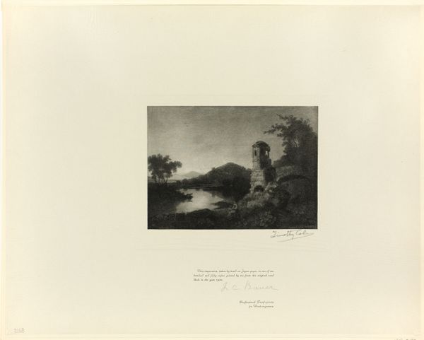 Curator: Here we have "Tidlig morgen ved middelhavets kyst," or "Early Morning by the Mediterranean Coast," a lithograph from the 1880s by Adolph Kittendorff. Editor: My first impression is one of tranquility, almost melancholic. The soft light and monochromatic palette evoke a sense of timelessness and isolation. It makes me wonder about the relationship between human structures and the landscape, the old and the new. Curator: Indeed, Kittendorff, active in Rome during that period, often depicted such idyllic scenes, playing into the Romanticism that defined much of the era’s artistic sensibility. Lithography allowed for a wider distribution of such images, reinforcing certain visual tropes around travel and leisure, specifically the Mediterranean as a site of cultural pilgrimage. Editor: That’s interesting. Pilgrimage, and to what end? This scene, in its supposed calm, perhaps conceals the colonial gaze inherent in depicting such ‘untouched’ landscapes for European consumption. It's impossible not to read images from this period through the lens of power dynamics and representational politics. Who is afforded the luxury to observe, to travel, to extract beauty from these spaces? Curator: Your point raises questions about authenticity and ownership in landscape art, of course. And, while Kittendorff may have benefitted from the infrastructures of privilege, he, himself, occupied a somewhat liminal position within the artistic hierarchy, due to the mechanical reproduction of his works. So the distribution of images like this cuts both ways, democratizing access on the one hand, and potentially, re-inscribing asymmetries of power, on the other. Editor: Absolutely. It becomes crucial, then, to analyze the narratives embedded in these works. How do they contribute to our understanding—or misunderstanding—of cultures and environments outside the European centers of power? And in that spirit of accessibility you invoked: what opportunities arise in challenging the historical power relations by decentering the artist himself and prioritizing unheard voices who dwell here by this coast, today? Curator: A pertinent question as we consider the continued relevance of art from this period. The layering of time and ideology within this image provokes vital dialogue, doesn’t it? Editor: Indeed, grappling with this historical depiction fosters much-needed conversations about how we choose to see, represent, and interact with each other.