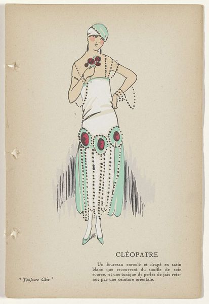 Editor: Here we have "Toujours Chic Les Robes, Hiver 1921-1922: Marquise," created sometime between 1921 and 1922 by G-P. Joumard. It's a drawing with ink and watercolor that looks like a fashion plate. I find the colour palette muted, which really gives it that historical feel, but how does this drawing resonate within its cultural moment? Curator: That’s a great question. Considering the period, the illustration emerges from the tail end of the Art Nouveau movement and right into the burgeoning Art Deco era. Can you see how it sits at the cusp, retaining the flowing lines of Art Nouveau while embracing a more simplified, geometric sensibility? Editor: Yes, definitely. You can see it in the dress patterns. So, this wasn't just a depiction of clothing; it had a bigger role in society? Curator: Absolutely. These fashion plates served as a crucial form of visual communication. In an era before mass photography and widespread visual media, they informed and shaped the desires and aspirations of a growing consumer culture. Think about it: this image promotes not only a style, but an entire lifestyle, projecting ideals of feminine beauty and social status. It was very much about exclusivity and taste. Editor: That makes me wonder, were these designs truly accessible, or were they meant for a very select audience? Curator: That's the crux of the issue. While seemingly democratic as a visual medium, these illustrations primarily catered to the haute bourgeoisie. Consider the social and economic stratification of the time; the clothes represented here would be unattainable for most women. In what way does this visual strategy influence viewers? Editor: I see, so these images, while beautiful, reinforced existing social hierarchies by promoting an exclusive and often unattainable image. I hadn't thought about it that way. Thank you! Curator: Precisely! Reflecting on the interplay between art, commerce, and societal structures really opens up how we view historical works like this.