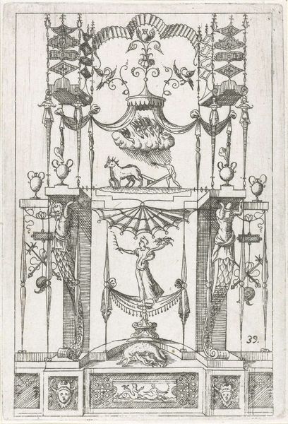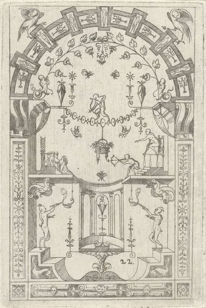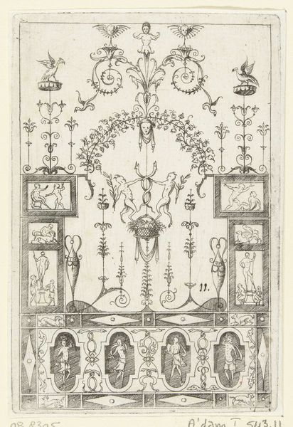 Hans Sibmacher created this print with etching around the turn of the 17th century. At this time, the printing press had enabled the quick reproduction and wide distribution of images. Here we see an example of ornament printmaking. In Northern Europe, the ornament print served an important function in the development and spread of Renaissance design, often serving as models for artisans working in various media. It provided a visual vocabulary for architects, sculptors, and craftsmen to incorporate classical motifs and principles into their work. Sibmacher’s design includes an array of decorative elements, from floral motifs and stylized figures to geometric patterns. Ornament prints such as this reflect the humanist culture of the time, demonstrating an interest in classical learning. The historian might look at the artist's other works and those of his contemporaries, and examine how these prints were used in workshops. This helps us understand the role of ornament prints in shaping the material culture of the Renaissance.