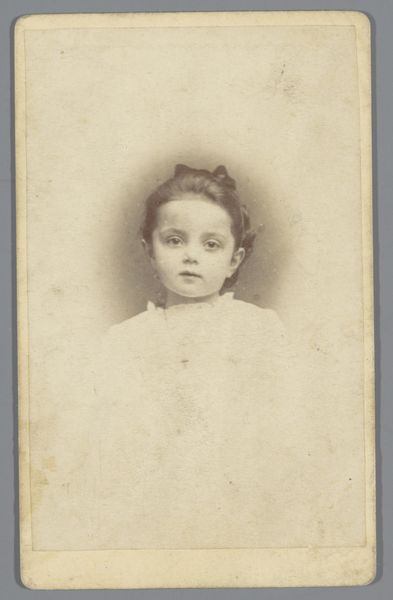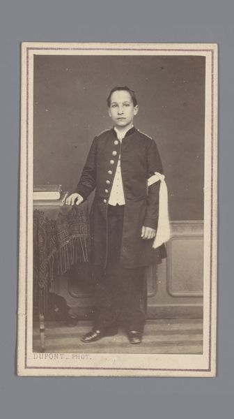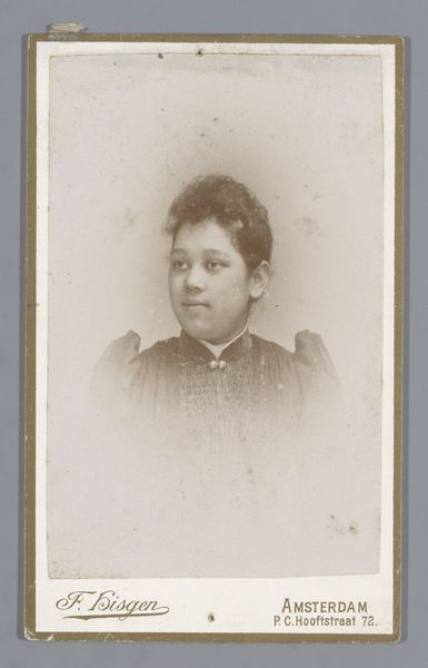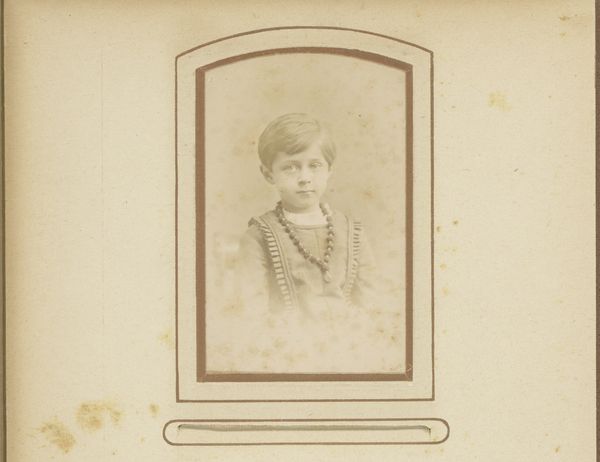 Editor: This gelatin-silver print, "Portret van een jongen" or "Portrait of a Boy," made sometime between 1882 and 1914, has such a formal, yet also melancholic feel to it. The boy’s gaze is so direct. How do you interpret this work? Curator: I see a carefully constructed image, where the photographer captures not just a likeness, but an archetype. The soft focus, the boy's dark jacket – these speak to a conscious invoking of painterly portraiture. Think of it: What does a portrait *mean* at the dawn of accessible photography? What memories is this trying to create? Editor: A carefully created memory, interesting… It does look very posed and the sepia tones give it an antique appearance. Curator: The clothes he wears, almost like a little uniform, speaks volumes. Is it an aspirational piece? Does it signify a certain social standing, or hopes for the future? Consider how clothing communicates identity and aspiration during this era, especially for children. The clothing, more than anything, stands out as symbolic. Editor: So it is not necessarily to capture his features, but to communicate through signifiers to portray something larger. Curator: Exactly! Photography, early on, was imbued with this sense of theatre, staging, and symbolic messaging, mimicking painting to gain legitimacy. Editor: That’s fascinating, seeing it not just as a portrait, but a calculated presentation using symbolism. Curator: Indeed. By examining the symbolic weight of these "details," like the boy’s attire, hairstyle and direct stare, we uncover not just a face, but an encoded representation of his potential. Food for thought, right? Editor: Definitely! I’ll never look at historical portraits the same way again. Thank you!