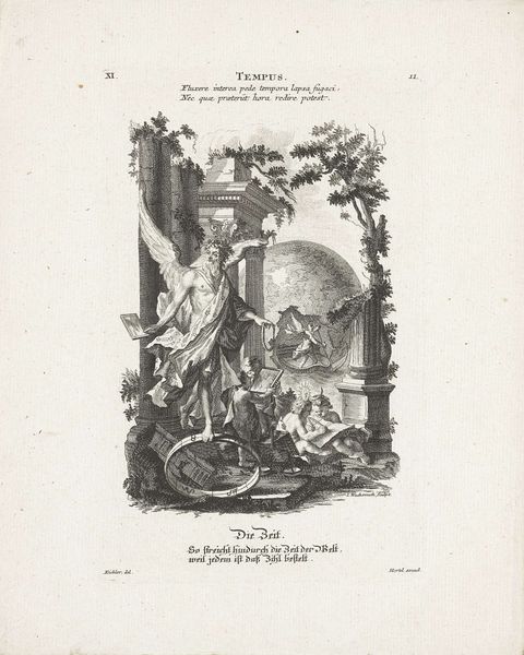 Curator: This print, titled "Im Sommer," which translates to "In Summer," comes from the first edition of the "Goethe Album" published in Leipzig, 1853. Editor: It's charming, evoking a sense of sheltered domesticity, almost like a scene from a fairy tale. Curator: It's fascinating to consider how this image, intended for a Goethe anthology, constructs an idealized vision of German life amidst the burgeoning industrial revolution. Note the women and children sheltered by the maternal tree. Editor: Indeed. The tree as a womb, visually protecting traditional roles as Germany grapples with modernization. The text below the artwork certainly lends itself to such an interpretation. Curator: And the doves, symbols of peace and fidelity, reinforce this notion of harmony and domestic bliss, perhaps a subtle commentary on the anxieties of rapid social change. Editor: So, it seems, this image provided a counterpoint, maybe even a form of resistance, through the lens of idealized domesticity. Curator: Precisely. It’s a powerful example of how art can reflect and shape societal values in times of transition.