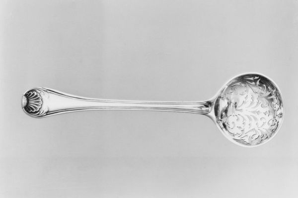 Editor: Here we have Mikhail Chulkov's "Spoon," created in 1839. It’s crafted from silver, which gives it such a reflective sheen. The piece is both functional and decorative, yet its height is so striking. What is your take on it? Curator: The “Spoon” compels us to consider the material conditions surrounding its production. Silver, of course, implies access to resources and a specific kind of labor. Given the historical context of 1839, it raises questions about silver mining practices, the socio-economic status of the silversmith, and the intended consumer of such an object. Who do you think used such a refined object? Editor: Someone wealthy, certainly. The twisting of the handle seems too elaborate for purely functional design. Maybe it points to leisure? Curator: Exactly. The ornamentation transforms it beyond utility, blurring the line between craft and art. Let’s consider the social dynamics at play here: the status symbol for the consumer but what does the process to create and provide the material and object mean? The silver wasn’t unearthed and formed spontaneously! It was extracted, processed and formed into this luxury product through exploitative structures that would benefit a select few in society at the expense of others, who may well be involved in food production but prohibited from having this symbol of their potential earnings? Editor: That's a sharp observation! I hadn’t considered the layers of labor embedded within such an everyday object. Curator: Reflecting on the material, silver, allows for us to interrogate those unseen aspects of society from which objects emerge and often conceal. Editor: So it goes beyond simple aesthetics to highlight societal issues and historical manufacturing complexities! Curator: Exactly. Hopefully, next time you'll have a better understanding of labour, the material and consumption that exists within these objects that have often been idealised through "art." Editor: I certainly will! Thanks for opening my eyes to these hidden narratives within the “Spoon.”