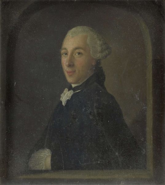 Curator: Here we have Hendrik Pothoven's "Portrait of Pieter Meijer, Publisher and Bookseller in Amsterdam," painted between 1750 and 1781. It's currently residing here at the Rijksmuseum. What are your first thoughts? Editor: There's an intriguing stillness, almost a muted quality to this Baroque-style portrait. He's poised, pen in hand, but his gaze is direct. One wonders about the politics embedded within this kind of representation and the power dynamics at play. Curator: Absolutely. Consider the materiality, the texture of the oil paint mimicking the fabric of his coat, the delicacy of the lace. And then there’s the very visible tool of his trade—the quill—drawing attention to the physical act of writing and publishing. We must consider the cost of his materials; who made the paper he wrote on and where did the ink come from? Editor: Yes, and looking closer, who was this man beyond the status the portrait confers? As a publisher in Amsterdam during this period, his work undoubtedly circulated ideas, potentially shaping public discourse and, perhaps, even challenging existing power structures, yet bound to the limitations set forth by the established order of the time. What impact did his publishing have? Curator: He most certainly played a key role. By printing and distributing literature, he influenced not only the aesthetic tastes of the time, but also facilitated the exchange of knowledge and contributed to the construction of public opinion. The printed page being the raw material of public sentiment. Editor: Exactly. We must remember that even what seems like a simple portrait is, in effect, a careful negotiation of identity, status, and the very real social and political world within which Pieter Meijer operated. Curator: Considering Pothoven's brushstrokes, the conscious effort to render the texture and weight of the objects depicted reveals an attention to the tangible realities of Meijer's world. It connects the world of the subject to the viewer directly. Editor: It compels me to think about the individuals whose labor underpinned Meijer’s success – the printers, binders, and distributors – rendered invisible yet crucial to the story this portrait tells. Whose stories were being printed and published; which groups benefited from their increased distribution? Curator: The painting acts almost like a material record of Meijer's professional identity, showcasing his participation in a particular commercial and intellectual landscape through the presence of tools like the quill. It provides clues to the inner workings of eighteenth-century trade. Editor: Looking at his poised hand again, the carefully crafted likeness serves not only as a marker of individual accomplishment but also as an invitation to consider the broader narratives of labour, intellect, and social stratification embedded within the canvas. Curator: A powerful reminder of the importance of analyzing not only the "what" but also the "how" of artistic and economic production. Editor: And how artistic representations function to both reflect and shape the societies from which they emerge.