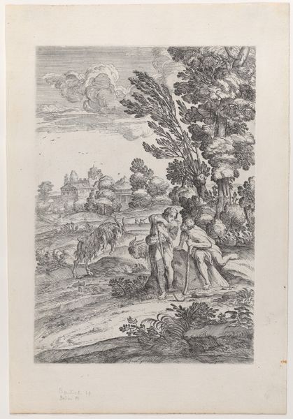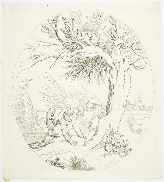 This print, "Sater met gesels naast een dorre struik," was made by Claude Mellan, most likely in the mid-17th century. Mellan was a master of engraving, a process involving cutting lines into a metal plate and then using ink to transfer that image onto paper. What's so special about Mellan is that he sometimes used a single line to create tonal variation, an incredibly difficult thing to do. The image shows a satyr with a whip next to a barren bush, and the line work is so precise and detailed that you can almost feel the texture of the satyr's fur and the roughness of the tree's bark. The way the light is rendered with such a minimalist approach gives the scene an otherworldly quality. Mellan was a highly sought-after portraitist, but his real genius was in pushing the boundaries of what was possible with engraving, elevating a reproductive technique to the level of high art. He reminds us that the value of an artwork isn't just about the image, but also about the skill and labor involved in its making.
