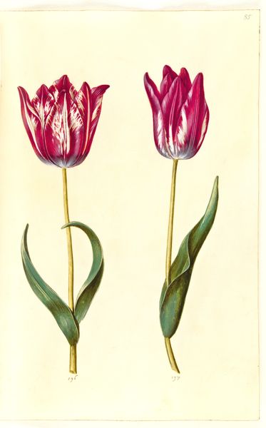 Hans Simon Holtzbecker painted this image of Tulipa gesneriana, or the have-tulipan, with watercolour and gouache on paper. Although undated, it was likely made in the mid-17th century. At this time, the Dutch Republic was gripped by “tulip mania” when speculation in tulip bulbs drove prices to extraordinary levels before dramatically collapsing in 1637. The tulip had become a potent symbol of social status and financial success. Holtzbecker worked as a botanical artist, commissioned to document the prized collections of wealthy merchants and aristocrats in the city of Hamburg. These images served as records of their owners’ wealth and good taste, and they also contributed to the scientific understanding of the natural world. By studying estate inventories, guild records, and other historical documents, we can reveal the complex interplay of art, science, and commerce in the Dutch Golden Age, and understand the significance of images such as this.