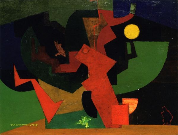 Arthur Dove’s Indian Summer is a painting where shapes play hide and seek with the familiar, rendered in hues of ochre, brown, and olive. Look at how the paint is applied; it's smooth, almost like watercolor, letting the yellow ground peek through, unifying the composition with its golden, end-of-season light. The large, dominant, circular shape pulls you in; it's ambiguous yet grounding. Dove orchestrates a visual dance, inviting us to contemplate our place within the rhythms of nature. Notice the subtle texture where the brushstrokes catch the light. The three figures standing apart; are they spirits, or observers? Dove’s work often straddles representation and abstraction, echoing the visionary landscapes of Marsden Hartley, a kindred spirit in the search for an authentically American modernism. This painting encourages us to embrace ambiguity and find beauty in the transient nature of existence.