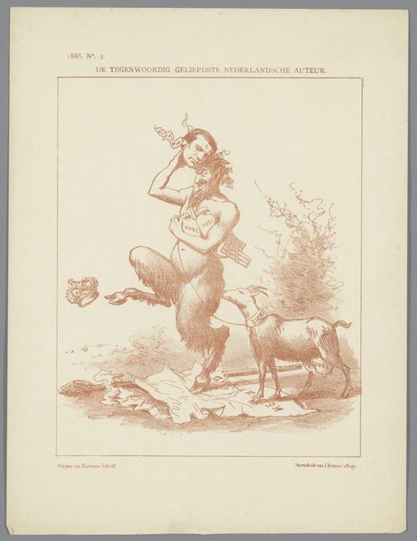 Curator: Honoré Daumier's lithograph, dating from the 19th century, titled "Danger de secouer trop fortement... Un prunier," presents an immediately striking image. What's your initial take? Editor: It has a chaotic yet comical energy. The distorted figures and frantic lines create a sense of instability and imbalance. Curator: Absolutely. The image features a well-dressed man hanging precariously from a tree branch, seemingly shaking it violently while a woman cowers beneath, possibly frightened. Considering the context of Daumier’s work as social commentary, this scene can be interpreted as a critique of bourgeois excess and its consequences, especially how their actions impact those around them. Editor: Yes, I see how the social commentary lens provides a strong understanding, but the man hanging on a plum tree – the dramatic use of chiaroscuro – directs the viewer's eye along lines of extreme, opposing diagonals; and this formal quality further amplifies the narrative and also our subjective response to what is, effectively, an absurdist situation. Curator: Daumier frequently used caricature to satirize the behaviors of the elite, revealing the potential harm caused by their self-absorbed actions, in intersection with class structures, wouldn’t you agree? The falling fruit or leaves might even symbolize lost opportunities or the disruption they cause. The lithographic medium lends itself well to such depictions through bold lines and stark contrasts. Editor: Agreed. Though his intentions of his political-satire might be Daumier’s overt aim, and indeed lithography as the industrial technique of mass distribution has socio-historical and political implications of its own – yet the immediate optical impression of the stark composition of these bent figures, as if arranged as the diagonals of a ‘broken’ X, is rather more emotive. And look at the way the shadows are sketched rather rapidly! I can feel his pen strokes here... Curator: Exactly. That interplay, however, reveals the complexities of the artist’s social viewpoint while making commentaries on the established. Editor: Well said. This viewing’s enabled me to feel afresh the emotive charge underlying Daumier's composition. Curator: It certainly deepened my sense of the historical factors informing it.