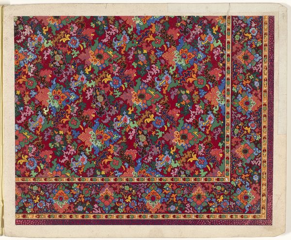 This design for a carpet showcases a pattern dominated by the boteh motif, a droplet-shaped figure, rendered in myriad colors against a field of deep red. The boteh, often associated with Persian and Indian textiles, symbolizes fertility and eternity. Observe how the paisley pattern echoes through time and cultures, re-emerging in Scottish shawls of the 18th century. Originally a symbol of life and regeneration, through its travels, it also became a marker of high fashion and exoticism. The boteh’s persistent reappearance might be explained by our collective subconscious longing for symbols of abundance and continuity, reflecting a desire to link ourselves to the past. The emotional pull of such patterns lies in their ability to spark a sense of heritage, engaging viewers with a narrative that transcends mere aesthetics. Ultimately, the image invites us to consider the cyclical nature of symbols. How motifs evolve, adapt, and resurface, carrying with them echoes of past meanings, ever transforming in the mirror of history.