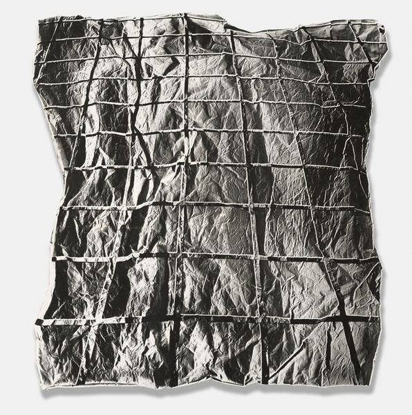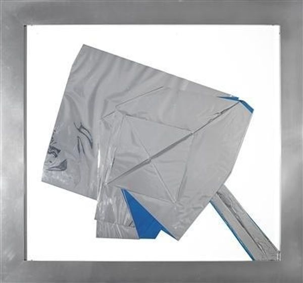 Editor: Here we have Larry Bell's "SMS 11," created in 1991. It's a mixed-media collage, and what strikes me first is how unconventional the materials seem. It's almost industrial in its coldness and abstraction. What can you tell me about how this piece functions within the broader art world? Curator: It's important to see Bell’s work within the context of postmodernism, specifically its rejection of high art versus low art distinctions. Consider how Bell is manipulating the very concept of the art object. Where does the ‘art’ reside? In the shiny mylar? The geometric overlay? Or is it in the tension created by their juxtaposition within the gallery space, forcing a re-evaluation of everyday materials. Do you think Bell is inviting the viewer to see the inherent beauty in the mundane, something often overlooked by institutions? Editor: I see what you mean. It’s almost a critique of the traditional, pristine gallery setting. By using materials that might be found discarded, he’s challenging the very notion of what deserves to be displayed. Do you think the "Pop-Art" style that has been assigned to this work serves this purpose? Curator: Precisely. "Pop-Art" used commercial, readily-available sources and processes, demystifying art. However, what's unique here is how Bell complicates this. He uses the familiar – packaging materials, geometric shapes – to create something ambiguous. In this sense, the “Pop-Art” label reflects a moment, as the work hints at, and actively resists simple commodification, blurring lines, just like our world continues to do today. How might the institutional setting further influence this interaction? Editor: It feels like its presence within this collection elevates these disregarded materials to an ironic, artful level. I never would have expected to have such complex feelings towards art utilizing industrial, everyday resources. Thanks for pointing that out. Curator: Absolutely, it goes to show you that art can function as both a mirror and a critical lens for society and our ways of making meaning. I wonder what people 30 years from now will read from this image of reflection.