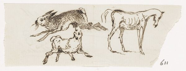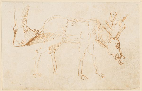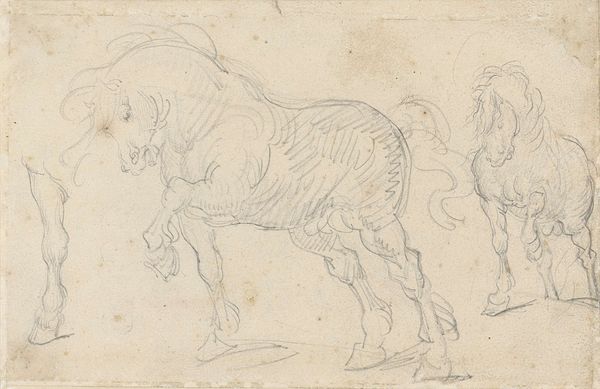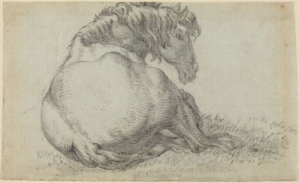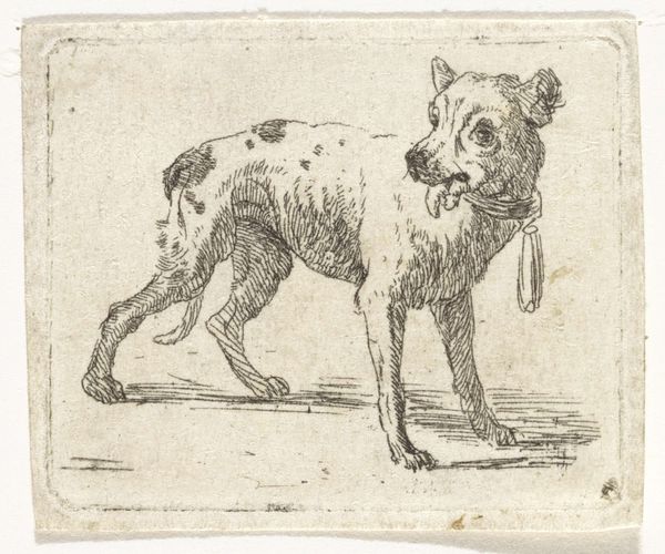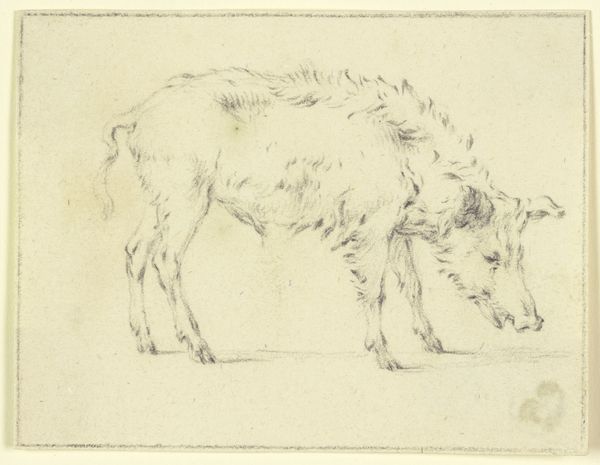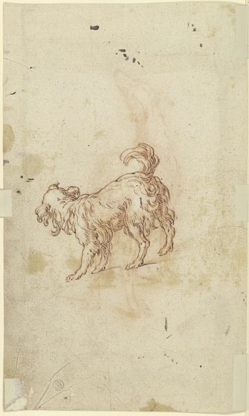 Editor: So, here we have "A Dog," a pencil drawing from around 1660 by Cornelis Saftleven. It has such a casual, unassuming air to it. How would you interpret this work? Curator: That's a great starting point. The apparent casualness actually invites deeper consideration, particularly regarding the societal role of animals, specifically dogs, in 17th-century Dutch life. Notice how this isn’t the idealized pet often depicted. This dog seems almost burdened. Editor: Burdened, how so? Curator: Well, consider the time. The Dutch Golden Age saw an explosion of wealth but also stark social divisions. Animals often mirrored these disparities. Do you see something almost worn, even a bit sorrowful, in its posture and rendering? Could this drawing, beyond a simple depiction, be subtly commenting on labor, servitude, or the lower rungs of society through this canine lens? Editor: That's a compelling idea. I initially saw only a simple sketch, but thinking about it in terms of societal commentary…the dog almost embodies a working-class figure. Curator: Exactly. And consider Saftleven’s other works. He often explored peasant life, sometimes with humor, but often with a critical eye towards social injustices. It’s plausible this drawing extends that thematic interest into the animal world. Do you think it would change the art market for sketches such as this one, in comparison to portraits of humans from the time period? Editor: It gives it a lot more weight. Instead of just being a charming genre scene, it becomes a quiet protest. It makes me think differently about art's capacity to reflect social anxieties, even through seemingly simple subjects. Curator: Precisely! Recognizing these interwoven layers enriches our understanding. It transforms what appears as a mere sketch into a poignant statement.