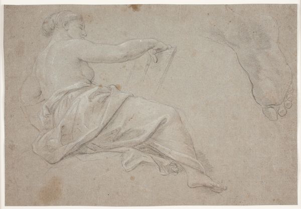 Curator: Here we have "Two Sketches of Saint Sebastian," a work rendered around 1639 by Simone Cantarini. It’s a chalk and charcoal drawing on paper, housed here at The Art Institute of Chicago. What's grabbing you right away? Editor: Immediately? The colour. It's this blood-orange, almost sanguine shade, that fills the figures and contrasts against the emptiness of the paper around them, so it feels inherently raw and fraught, like a memory surfacing through dreams. Curator: Indeed, that raw feeling comes partly from Cantarini's drawing process. Red chalk allowed a certain freedom in sketching outlines and building up tonal masses very quickly. The way he handles form, however, does have precedent. There's definitely influence here from his engagement with Guido Reni’s style. Editor: It's interesting you mention his mentor because to me the contrast between Reni’s and Cantarini’s Sebastian interpretation makes this so interesting: while both have a refined, courtly aesthetic, this version feels a lot more like a human caught in torment, as though you are watching a memory of him as he suffered. It’s not necessarily divine or romanticized. Curator: That touches upon the politics around how Saint Sebastian was depicted at the time, which went hand in hand with civic and personal anxieties during plague outbreaks. Images of him experienced a resurgence. Here the figures become sites of contemplation in this dual study on form. Editor: Right, it’s like he's trying to pin down the core emotional state more than just representing it, maybe in its quiet moment just before or after. It also prompts the question of how Saint Sebastian may have felt: the agony of his wounded flesh, how heavy the world felt... You see a quiet, internal torment made physical here. Curator: An intimacy born from the interplay between faith, crisis, and artistic expression. Thanks for making me reconsider how Saint Sebastian served as a kind of mirror reflecting wider cultural pain. Editor: Definitely a dialogue with history. And sometimes it’s enough to just sit with that echo and the quiet chaos it inspires.