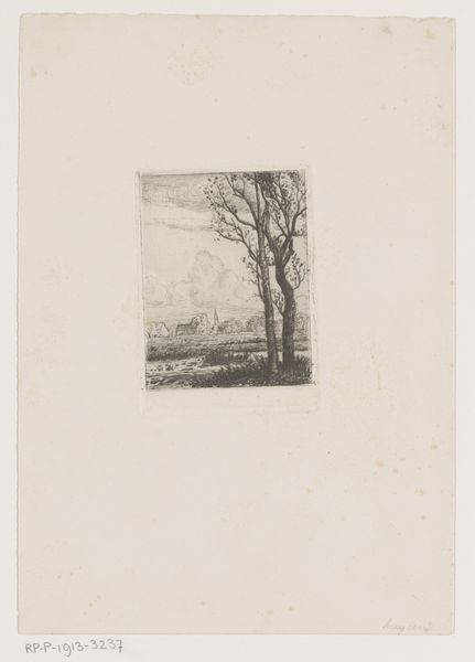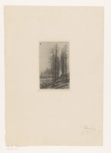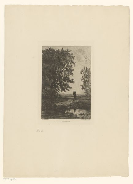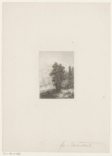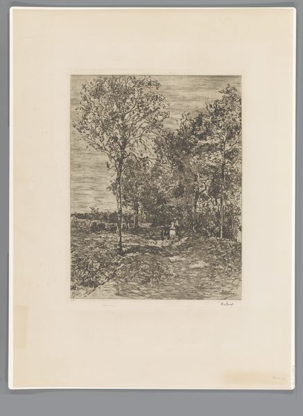 Emile de Baré made this print, showing a small building on a hillside in a wooded area, using etching. Etching involves covering a metal plate with a waxy, acid-resistant ground. The artist then scratches an image into the ground, exposing the metal. When the plate is dipped in acid, the exposed lines are eaten away, creating grooves. Ink is then applied to the plate, filling these grooves. The surface is wiped clean, and the image is transferred to paper under high pressure. The result is a finely detailed image with a distinct graphic quality. The intricate lines and textures capture the scene's nuances, from the foliage to the subtle gradations of light. As with all printmaking, the character of the line is everything. And in the nineteenth century, a premium was placed on subtle, evocative mark-making, as distinct from the bolder forms of industrialized production. De Baré's choice of etching, with its inherently reproductive nature, reflects the increasing democratization of art. Printmaking made art more accessible, moving it beyond the confines of unique, handmade objects.
