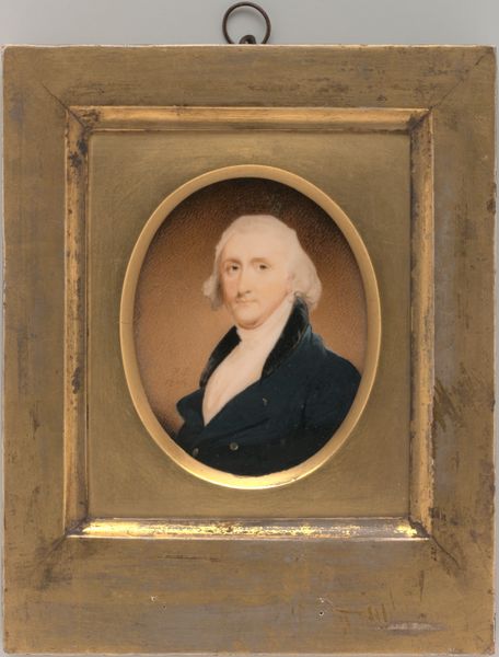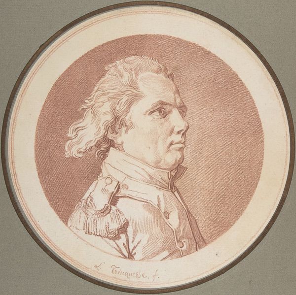 Curator: Take a look at this artwork by Emile Dupont-Zipcy, created sometime between 1840 and 1883. It's a compelling portrayal of George Washington, currently held in the collection of the Metropolitan Museum of Art. Editor: Immediately, I feel a strange sense of melancholy looking at this profile. It’s like a ghost trapped in graphite and faded watercolor—the delicate colors hint at a story beyond the stoic leader. Curator: Absolutely. Portraits of Washington, especially in that Neoclassical era, tended to be these idealized, almost marble-like depictions meant to convey strength and stability of the burgeoning republic. However, Dupont-Zipcy brings a human element—vulnerability—to this image. Editor: I'd say, it's that Romantic style creeping in, isn't it? Less about stiff grandeur and more about feeling. You almost see him aging, which is rarely a characteristic that politicians would like portrayed on canvas. I imagine colored pencil allows more spontaneity too. Curator: Precisely. This era witnessed artists questioning established norms, attempting to inject more of their own sentiments and observations into commissioned works. Also, the choice of medium matters; these were not formal commissions, they were personal explorations. Editor: Which gives a little more soul than your usual Washington memorial. The piece whispers to me of personal reflection—maybe Dupont-Zipcy saw parallels in Washington's burdens and triumphs— the piece itself having lived long enough to become fragile with time. Curator: It's the subtle cracking of the artwork’s surface—the wear and tear—that visually mirrors the weight of leadership itself. These materials aren't meant for forever; they are records of specific lives and times. The profile as a pose, also gives off the feel of an iconic historical reference; he’s both there, and almost beyond reach. Editor: What do you think, could he hear us now? I hope the old chap appreciates how his portrait here carries so many silent but weighty stories through its artistic touches, telling far more than just official biography, of time and of humanity!