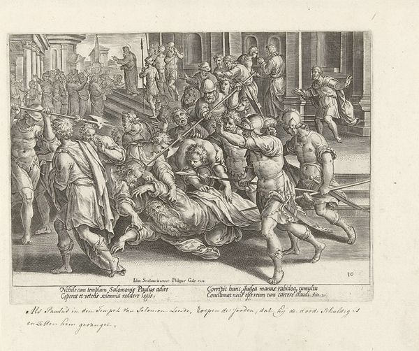 Editor: So this engraving, "Allegorie met Holland en West-Friesland" by Romeyn de Hooghe, created sometime between 1704 and 1706...it’s really packed with figures and symbols! It gives the impression of grandeur but also feels quite formal. What do you see in this piece? Curator: Immediately, one is struck by the composition's hierarchical arrangement. Observe the central figure, likely representing Holland, elevated and surrounded by subsidiary figures. This structural emphasis asserts dominance through spatial relationships alone. Do you notice how the engraver manipulates line weight to differentiate planes of depth, thus creating visual stratification? Editor: Yes, I see that. The central figures are definitely more sharply defined. So, the arrangement and line work are all contributing to this message of power? Curator: Precisely. Consider, too, the use of heraldic symbols positioned prominently above the figures. These devices function as visual signifiers of authority, anchoring the allegory within a specific cultural and political context. Note, in particular, the strategic deployment of light and shadow. Where is it concentrated, and what effect does this have? Editor: It seems the light is focused on the central figures, making them even more prominent. I guess that emphasizes their importance even further? Curator: Exactly. And that reinforces the artwork's central themes of authority and order, all communicated through its formal elements. One can then interpret such a print, via structuralist readings, to codify social structure, rather than reflecting tangible political power as such. Editor: I hadn't thought about it that way, focusing on how the lines and symbols themselves create the message. That gives me a new way to look at prints like these. Curator: Indeed. Formal analysis allows us to decode the visual language, extracting meaning from the artwork's intrinsic properties, independent of historical narrative. This print, carefully constructed, tells the most profound truths.