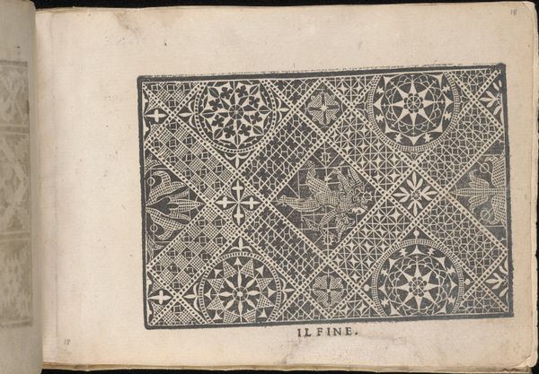 Giovanni Battista Ciotti created this woodcut, titled "Prima Parte de' Fiori, e Disegni di varie sorti di Ricami Moderni," which translates to "First Part of Flowers and Designs of Various Kinds of Modern Embroidery," in Italy, sometime between 1555 and 1659. The image presents a series of intricate patterns intended as templates for embroidery. Created at a time when printed books were becoming more accessible, pattern books like this democratized access to design. No longer were such designs limited to wealthy patrons who could commission them. The geometric patterns and stylized flora and fauna reflect the cultural tastes of the time, where classical forms were being reinterpreted in new ways. The presence of the griffin motif also reflects a rising interest in mythical creatures during the Renaissance. To understand the true value of this piece, scholars research the socio-economic conditions that influenced the production of printed books. They might also look into the history of embroidery as a domestic practice, and the gendering of labor in the early modern period.