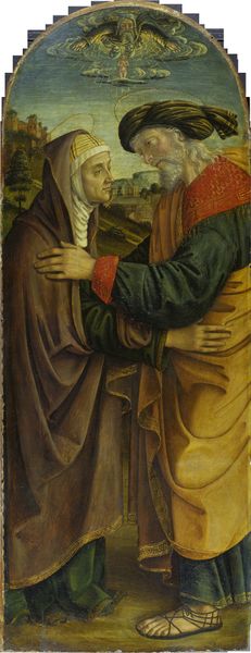 Editor: So, here we have a panel from Jan van Eyck's Ghent Altarpiece, created around 1432, showcasing John the Baptist. It’s oil on panel and truly impressive in its detail. I’m struck by the very direct gaze and his commanding gesture; it's both inviting and a little severe. What’s your take? Curator: This piece represents much more than just a portrait. It reflects the growing importance of patronage and the role of art within the Burgundian court and religious institutions. Van Eyck’s hyper-realism served specific ideological purposes. Notice how John’s earthly presence, even his bare feet, don’t diminish his divine significance. Why do you think such details mattered? Editor: Perhaps to make the religious figure more relatable to everyday people? It closes the gap between the divine and the mortal, maybe? Curator: Exactly. The Ghent Altarpiece, positioned prominently within the cathedral, played a significant public role. The work helped shape religious devotion and reinforced societal hierarchies, by presenting a vision of holiness sanctioned by the Church and powerful donors. Editor: It’s fascinating to consider art as a tool to reinforce certain societal structures. So the beauty and skill weren't just aesthetic achievements. Curator: Precisely. Van Eyck's artistry, therefore, served both the glorification of God and the reinforcement of social and political order. His sophisticated use of oil paints, the detailed textures and realistic depictions of fabric and skin were all part of conveying authority. What does knowing that change about your perception of the painting? Editor: It definitely makes me reconsider the artist’s intentions. It encourages me to examine more critically the power dynamics at play during the artwork's creation and display. Curator: Indeed, that critical awareness transforms the art into something far beyond just paint on panel; it becomes a window into history and a reflection of enduring societal forces.