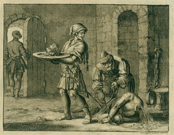 Giuseppe Maria Crespi painted 'Scene in a Cellar', sometime between the late 17th and early 18th centuries, during a period of significant social stratification in Europe. Crespi, an Italian painter, often depicted scenes of everyday life, and here, we observe two figures engaged in labor within the dimly lit confines of a cellar. Consider how the identities of these laborers might be shaped by their work and social standing. The stark lighting and cramped space suggest a life of toil and limited opportunity. Crespi chooses to depict these men with dignity, but the image does not shy away from the realities of their physical labor. The artist encourages empathy by showing the men focused on their tasks with strained muscles visible. This painting invites us to reflect on the historical context of labor, and the lives of those whose work often goes unseen, raising questions about class, value, and the human condition.