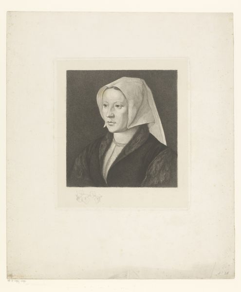 Editor: This is "Portret van een onbekende jonge vrouw," created by Auguste Danse in 1895. It appears to be a pencil drawing. I'm struck by the subject's direct gaze. It feels almost confrontational for a portrait of this period. What can you tell me about the historical context surrounding this work? Curator: This piece raises intriguing questions about representation and the social function of portraiture at the time. In the late 19th century, the rise of photography challenged painting's role as a recorder of likeness. So, what was Danse trying to achieve with this pencil portrait? Was it a deliberate embrace of the handmade, perhaps a statement against the mechanical reproduction of images? Editor: That’s a fascinating point. Maybe it's a comment on authenticity or perhaps an attempt to capture something beyond mere physical resemblance, something photography couldn’t easily achieve? Curator: Precisely. Consider the societal context: the emerging middle class seeking social mobility, the burgeoning art market... Did portraiture, even in pencil, become a tool for social climbing or a way to assert individual identity within a rapidly changing society? Who do you think would commission such a piece and why? Editor: Maybe it's less about showing status, and more about capturing a fleeting moment. It feels more intimate and less formal than a painted portrait might be. Curator: That intimacy, I think, is crucial. This choice of medium could signal a move away from grand, public pronouncements towards something more personal and psychologically revealing. Editor: I've never thought about the medium contributing so much to the overall message. This drawing made me reflect on portraiture as more than just documentation. Curator: Indeed, it's a testament to the artist's skillful manipulation of social cues and aesthetic choices. Thinking about this artwork has made me appreciate the dynamic relationship between art and societal transformation even more.