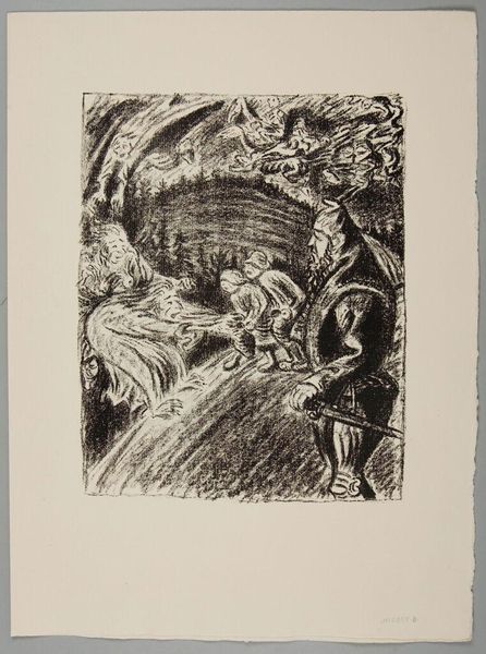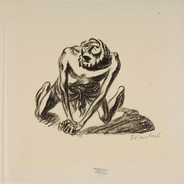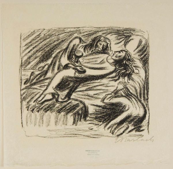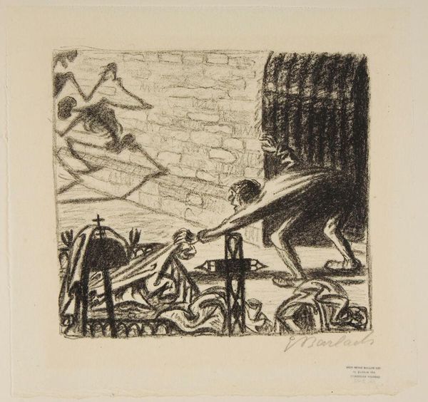 Editor: This is Ernst Barlach's, Pariah: The Legend 2: Hill of the dead. It's undated, but the rough charcoal strokes and dark composition create a really somber, almost desperate mood. What's your read on it? Curator: Desperate is right. Barlach lived through some brutal times, and I see that etched in every frantic line. The composition feels almost like a descent, doesn't it? As if we're being dragged down into the depths of despair with these figures. Editor: Yeah, it’s not exactly uplifting! The expressions are so intense. Curator: They are! And notice how Barlach uses light and shadow, or the lack thereof, to amplify that feeling. It's all heavy, like a bad dream clinging to the surface. What does it stir up in you? Editor: It's a bit suffocating, honestly. It makes me want to understand the story behind it. Curator: That’s Barlach! He grabs you by the throat, doesn’t he? But there’s a certain raw truth to it that's undeniably compelling, even beautiful, in its own way.