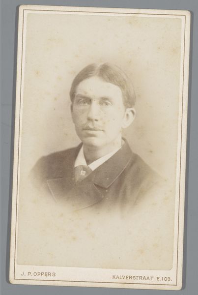 Godfried de Jong made this small portrait of a man, using photographic techniques that were becoming increasingly common in the 19th century. The image is captured through a chemical process onto a metallic plate or coated glass. This was an exciting departure from painted portraiture; photography democratized image-making, making it possible to produce likenesses at a fraction of the cost and time previously required. However, the labour involved shouldn't be underestimated. Each photograph required careful preparation of the materials, precise timing during exposure, and skilled development in the darkroom. While photography was an industrializing process, it still required considerable handwork. The result is a fascinating intersection of technology and craft, mirroring the sitter's own place in a rapidly changing society. It invites us to consider how new modes of production influence not only what art is made, but who gets to be represented.