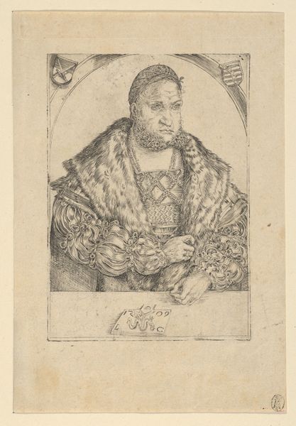 This is Johann Michael Püchler’s portrait of Martin Luther, created around the late 17th century. The portrait is contained within an oval frame, filled with script, and is rendered with a delicate precision. This structural containment presents Luther as if he is at the center of the reformation, yet fixed within the confines of religious dogma. Püchler’s technique here is intriguing. The lines are remarkably fine, creating a texture that is almost ethereal. The composition is vertically oriented, which emphasizes Luther's clerical stature. Luther is shown holding a book, presumably the Bible, suggesting the importance of scripture in his teachings. Note how the artist uses the oval frame filled with text to create a sense of enclosure. This feature might suggest how Luther's revolutionary ideas became institutionalized, framed within the very traditions he sought to reform. The interplay between the open figure and the closed frame creates a fascinating visual tension, inviting us to consider the complexities of legacy and reformation.