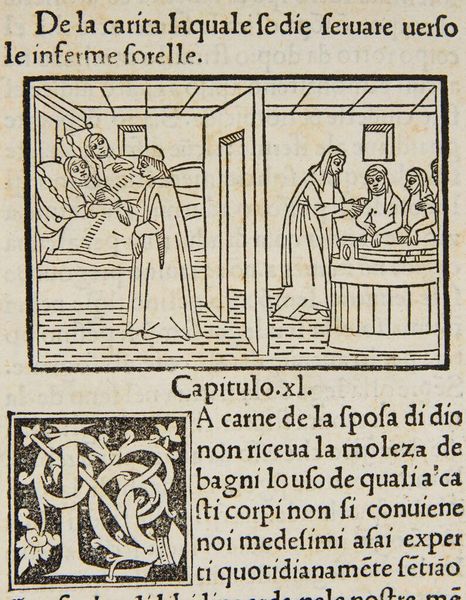 Curator: This is an anonymous woodcut print, titled "Ch. 11. On the vanity of worldly knowledge," currently housed at the Harvard Art Museums. Editor: The burning books immediately strike me. There's such a stark contrast between that destructive act and the serene expressions on the figures' faces. Curator: Indeed. Burning books was a common motif during periods of religious reform. It visually represents the rejection of secular knowledge in favor of spiritual enlightenment. Editor: Right, and this being a woodcut, the very act of its production involves a skilled artisan, laboring meticulously to propagate this anti-intellectual message, creating a fascinating material paradox. Curator: The image evokes the power of the Church, its dominance in shaping thought and controlling the flow of information, especially during the rise of printed materials. Editor: I keep thinking about the books themselves, the paper, ink, binding. These physical objects are being destroyed, which reveals the intense fear towards the ideas they contain. Curator: A powerful reminder of how societal values can drastically reshape our relationship with knowledge and its dissemination. Editor: Yes, it's a potent, if troubling, encapsulation of a complex moment in the history of materials and belief.